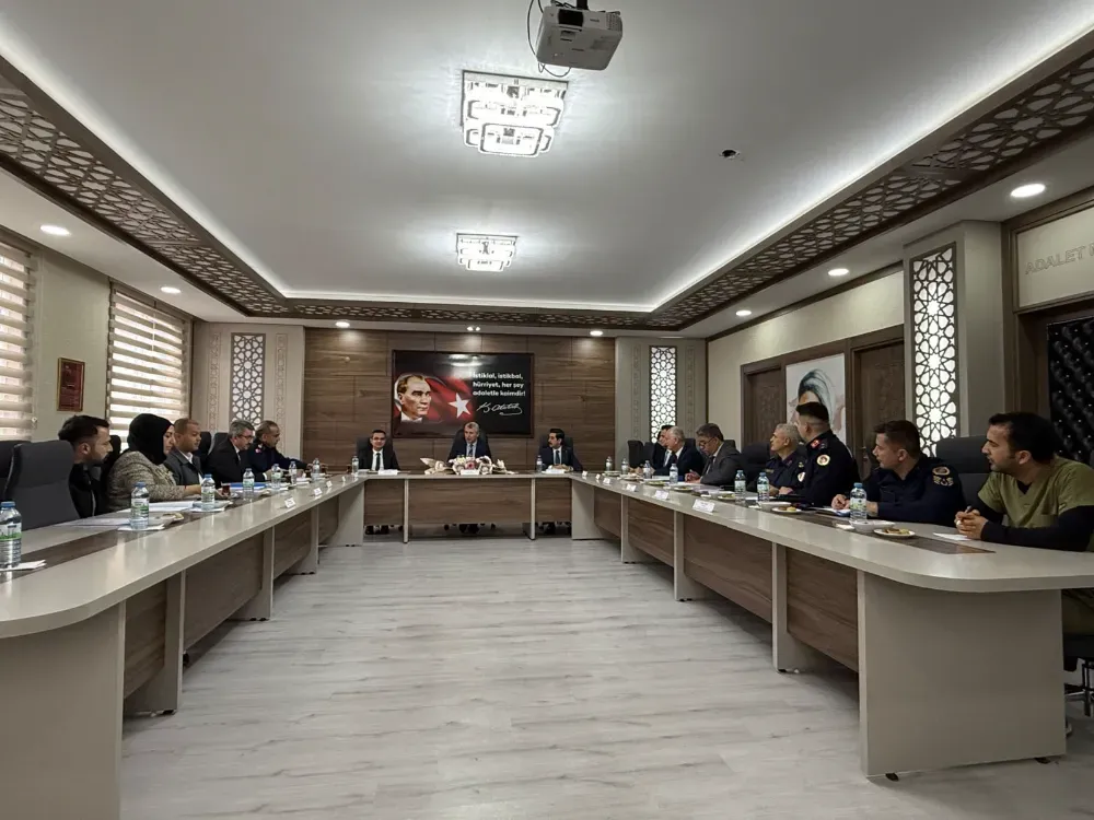 Cumhuriyet Başsavcımız Sn. Osman Köse’nin başkanlığını yaptığı toplantıya, Cezaevlerinden sorumlu Cumhuriyet Savcımız Sn. Hüseyin Durna, İnfaz Bürosundan Sorumlu Cumhuriyet Savcımız Sn. Doğan Karaçizmeli, Kampüs Ceza İnfaz Kurumu ve T Tipi Ceza İnfaz Kurumu yöneticileri, Jandarma ve Sağlık İl Müdürlüğü temsilcileri katılım sağlamıştır.