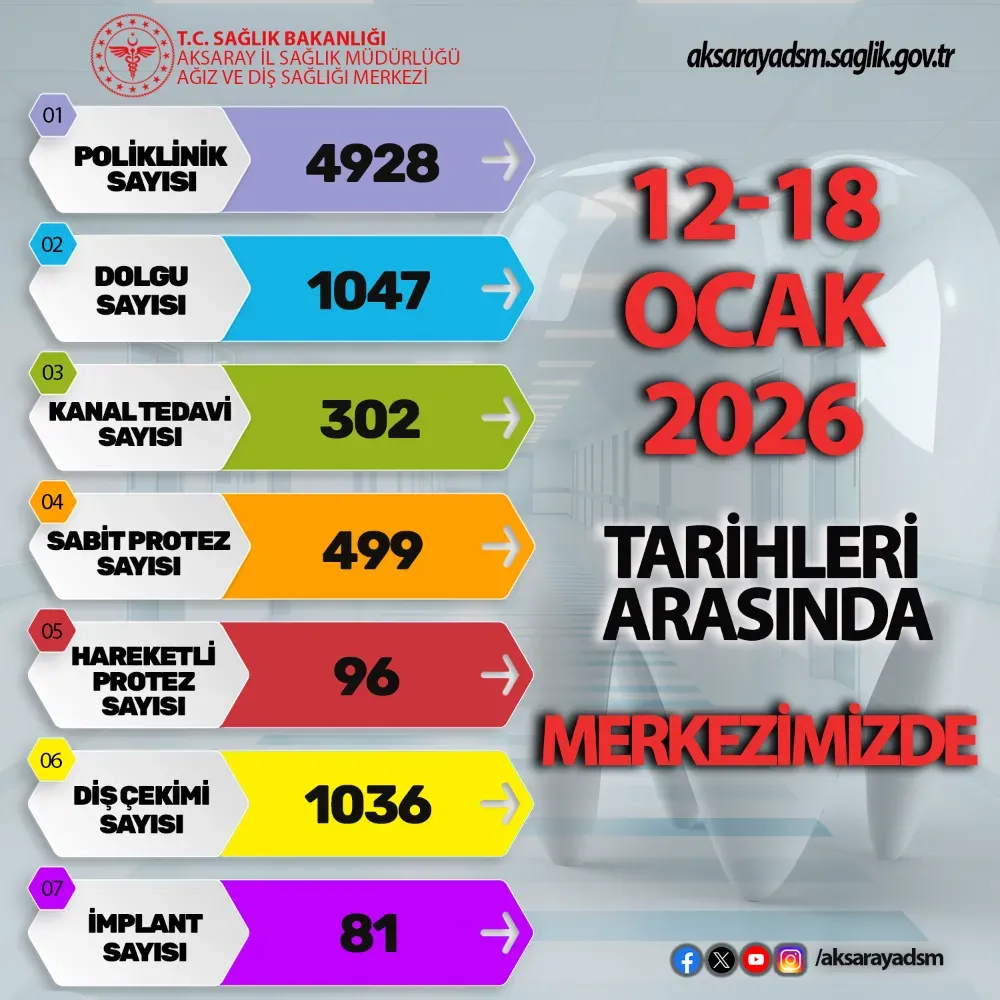Aksaray Ağız Ve Diş Sağlığı Merkezi 12 Ocak 2026/18 Ocak 2026 tarihleri arasında verilen hizmetleri açıkladı