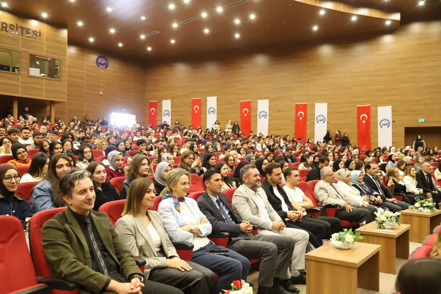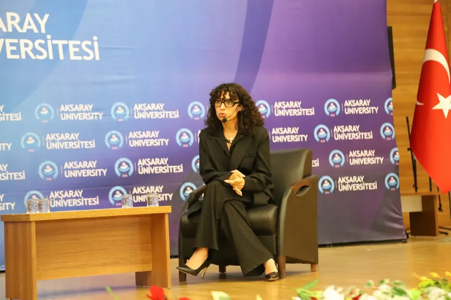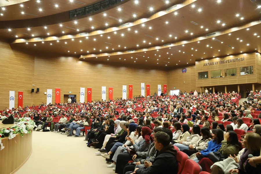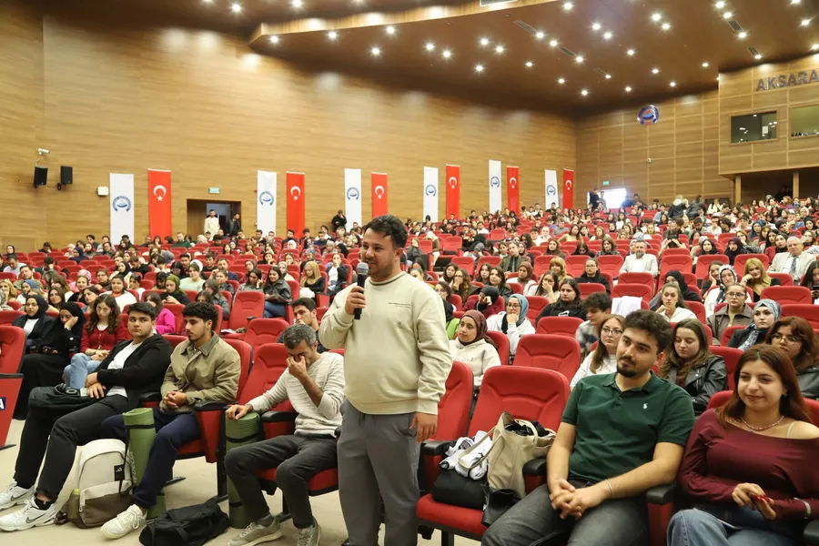 Aksaray Üniversitesi (ASÜ) Konferans Salonu’nda düzenlenen “Bir Perde, Bin Hikâye” konulu söyleşinin konuğu BKM oyuncusu Tuğba Yılmaz, öğrencilerle buluştu. Söyleşi programına ASÜ Rektör Yardımcısı Prof. Dr. Ömer Köse, Fen-Edebiyat Fakültesi Dekanı Prof. Dr. Talat Baran, akademisyenler ve öğrenciler katıldı. Oyunculuk serüveninden sahne deneyimlerine kadar pek çok konuda samimi açıklamalarda bulunan Yılmaz, öğrencilerin tiyatro ve sahne sanatlarına ilişkin sorularını esprili bir dille yanıtladı.