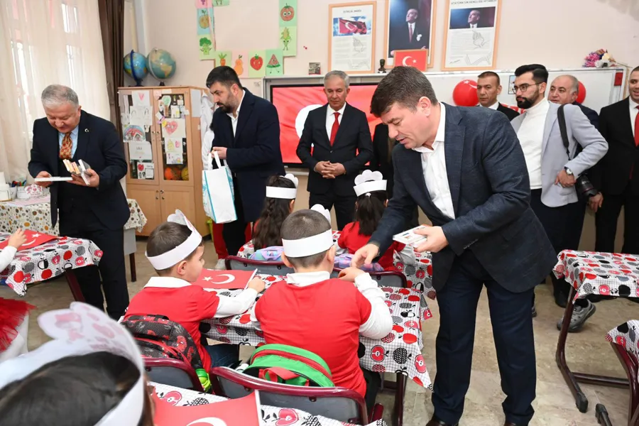 Program kapsamında Vali Murat Duru ve Belediye Başkanı Dr. Evren Dinçer, eğitim öğretimin ikinci döneminin ilk gününde öğrencilere Türk bayrağı ve çeşitli hediyeler takdim etti. Öğrencilerin mutluluğuna ortak olan protokol üyeleri, öğrencilere derslerinde başarılar diledi.