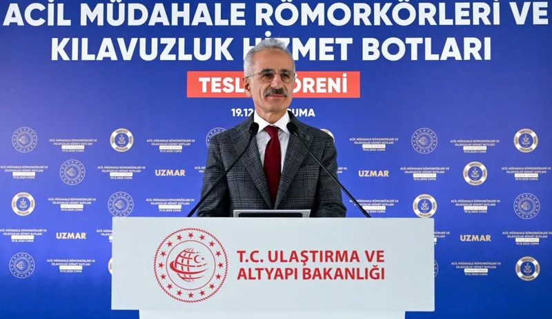 Uraloğlu, Kıyı Emniyeti Genel Müdürlüğüne Acil Müdahale Römorkörleri ve Kılavuzluk Hizmet Botları Teslim Töreni'nde konuştu. Bakan, yeni araçların güçlü filoya katılmasından duyduğu memnuniyeti dile getirdi.