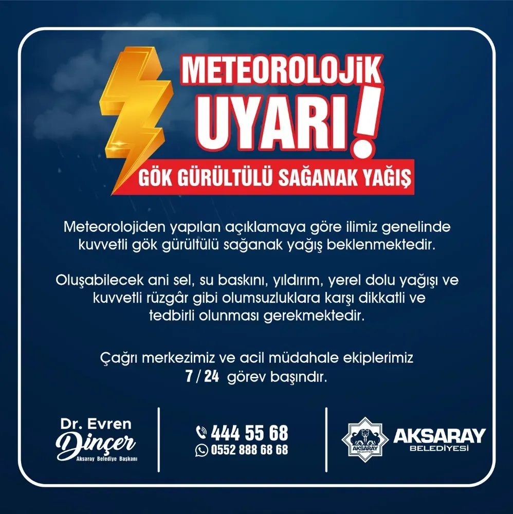 DİKKAT! İLİMİZDE DEVAM EDEN SAĞANAK YAĞIŞ NEDENİYLE MEYDANA GELEBİLECEK OLUMSUZLUKLARA KARŞI UYARI