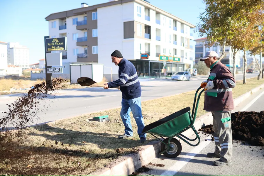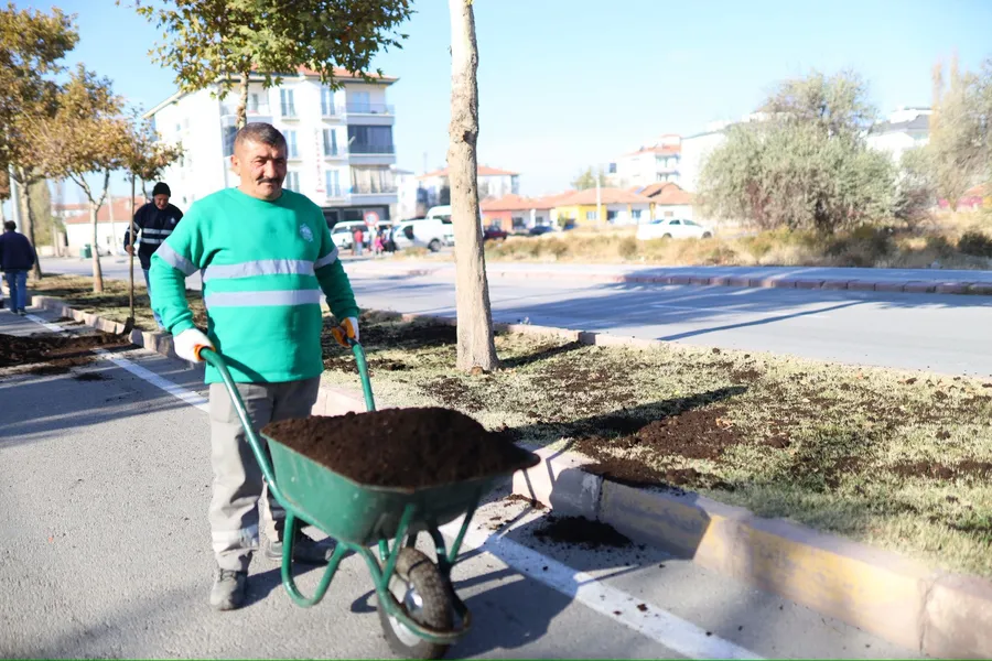 Selçuk Caddesinde çim ekimi ve yeşil alan çalışmasındayız.