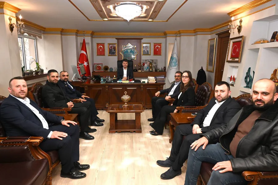 Aksaray Esnaf ve Sanatkârlar Odasına Başkan olarak seçilen; Hanifi Emre Güler ve beraberindeki yönetimi, Başkan Evren Dinçer'i ziyaret etti