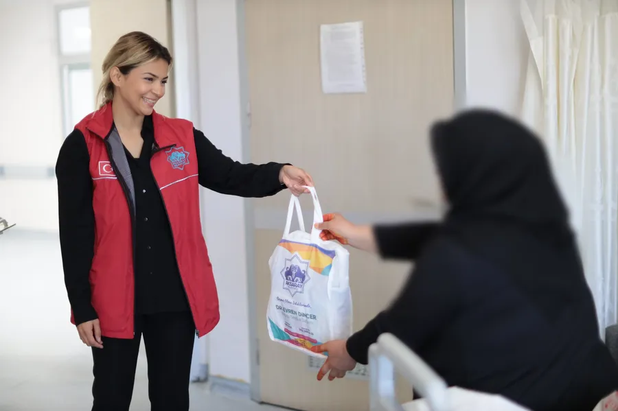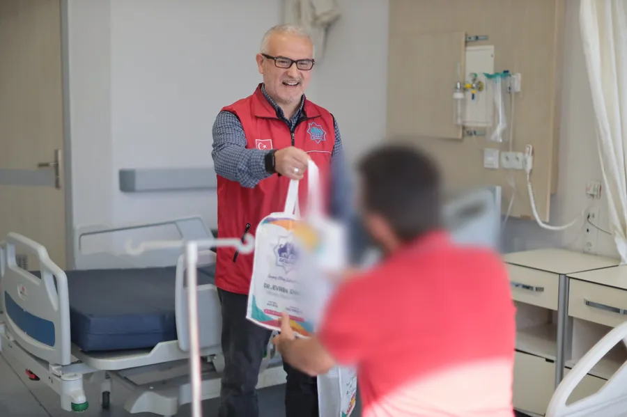 Hastanede tedavi olan hemşehrimize, içerisinde kişisel temizlikten hijyen malzemelerine kadar her ayrıntıyı düşündüğümüz hasta bakım setlerimizi ulaştırıyoruz.