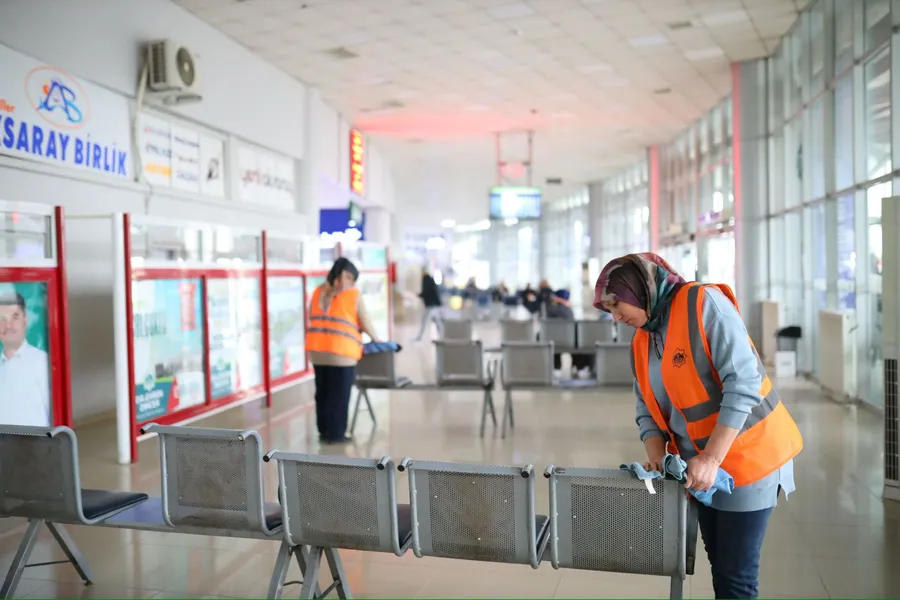 Şehirlerarası Otobüs Terminalimizde temizlik çalışmamızı sürdürüyoruz.