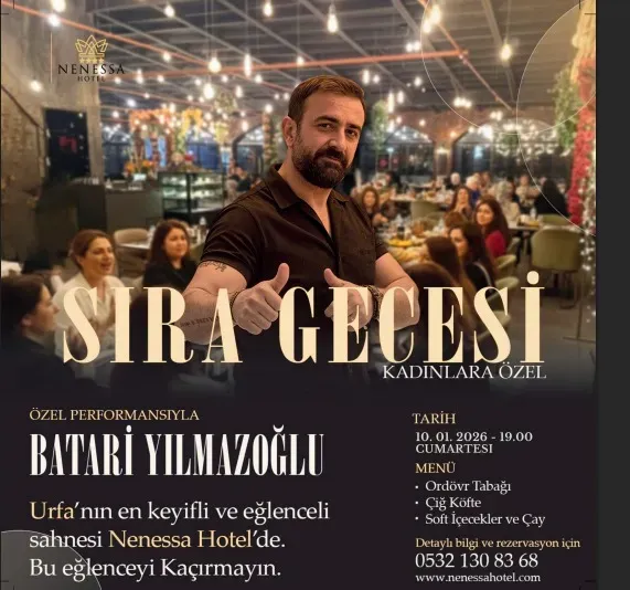 Sahne performansıyla geceye damgasını vuracak olan Batari Yılmazoğlu ile türkülere, halaylara ve sohbete doyacağız! Hem lezzetli ikramlarımızın tadını çıkarın hem de dostlarınızla harika anılar biriktirin.