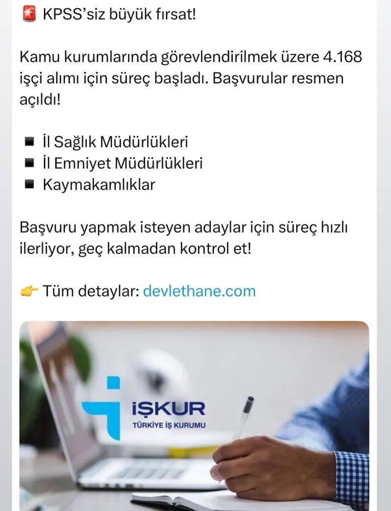 KPSS’SİZ 4.168 İŞÇİ ALIMI BAŞLADI!