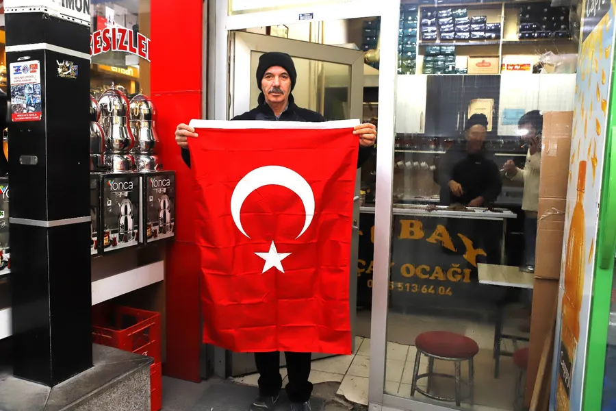 Öte yandan saldırıya karşı güçlü bir duruş sergilemek amacıyla Aksaray Belediyesi Hizmet Binası’na dev Türk Bayrağı asıldı. Belediye binasında dalgalanan bayrak, vatandaşlardan büyük takdir topladı.