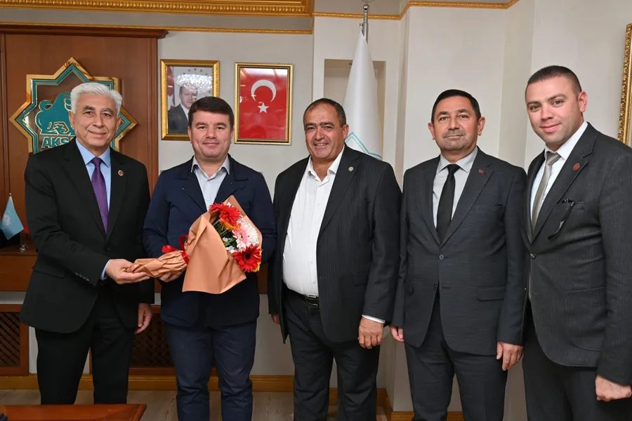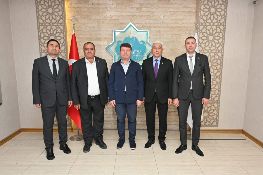 Belediye Başkanımız Sn. Dr. Evren Dinçer'i ziyaret eden; Köy Muhtarları Derneği Başkanı Sn. Emin Koçak'a, Aksaray Muhtarlar Derneği Başkanı Sn. Fikret Dağ'a, Aksaray Girişimci Muhtarlar Derneği Başkanı Sn. Emre Ağaçdelen'e ve Aksaray Valiliği İdare ve Denetim Müdürü Sn. Yılmaz Aktemir'e teşekkür ediyor, çalışmalarında kolaylıklar diliyoruz.