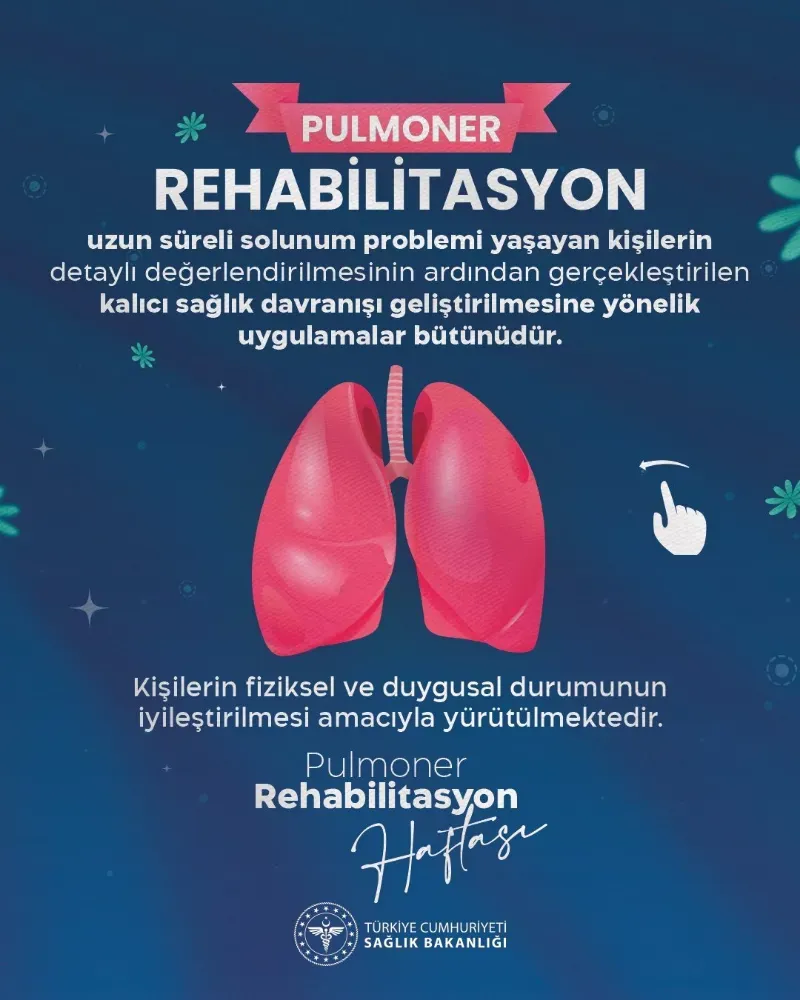 Pulmoner rehabilitasyon, söz konusu hastaların tıbbi tedavilerini desteklemek, fonksiyonel ve psikososyal durumlarını iyileştirmek için alanında uzman olan kişilerden oluşan bir ekip tarafından her bireyin ihtiyacına göre hazırlanan ve yürütülen kapsamlı bir müdahale programıdır. Programın, egzersiz eğitimi başta olmak üzere beslenme eğitimi, özyönetim eğitimi, sağlık davranış değişikliği gibi çeşitli bileşenleri bulunmaktadır.