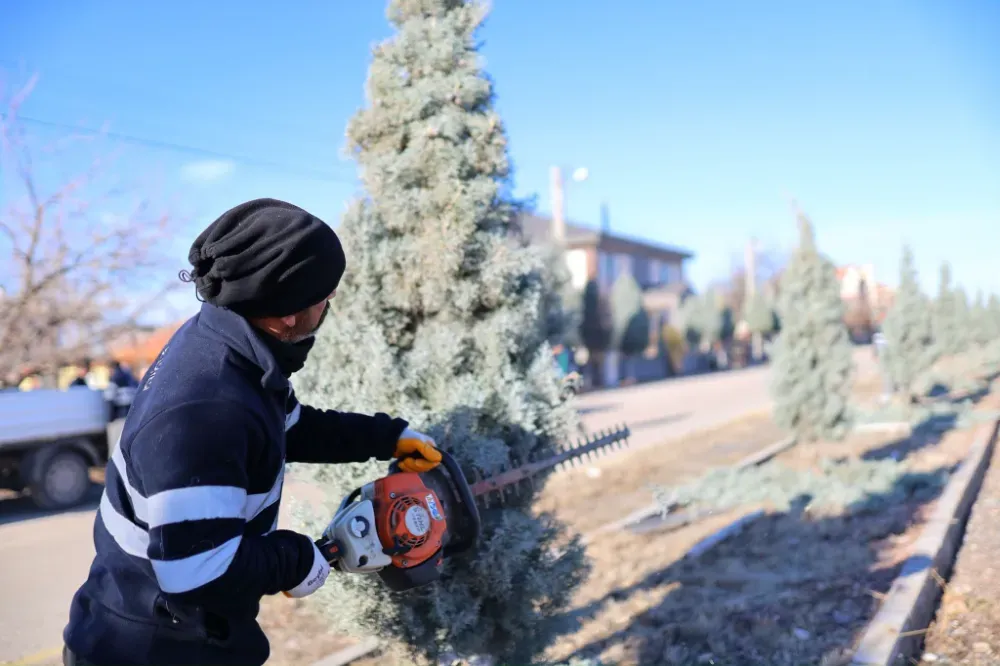 Cumhuriyet Mahallemizde çam ağaçlarını buduyor, peyzaj çalışması yapıyoruz
