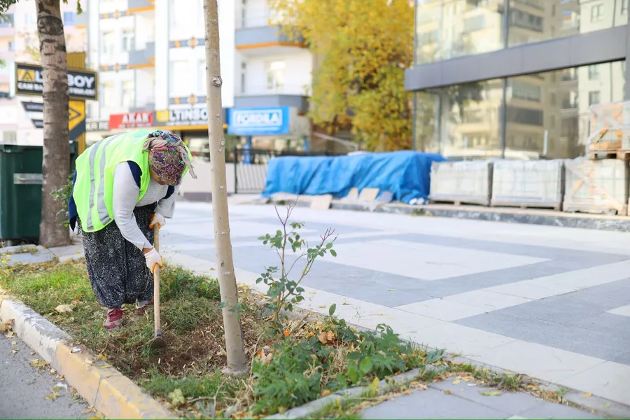 Atatürk Bulvarımızda peyzaj, çevre temizliği ve yabani ot temizliği yapıyoruz.