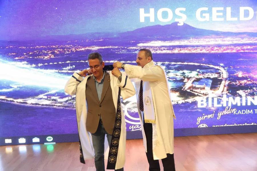 Törenin açılışında konuşan ASÜ Rektörü Prof. Dr. Alpay Arıbaş, programın üniversitenin 20. kuruluş yılı etkinlikleri kapsamında özel bir anlam taşıdığını ifade etti. Bir hafta boyunca devam eden etkinlikler içerisinde akademisyenlere yönelik böyle bir tören düzenlemeyi özellikle önemsediklerini belirten Arıbaş, akademik başarının en doğru şekilde yine akademisyenlerle paylaşılması gerektiğini vurguladı. Konuşmasında bilimin temel dinamiklerine de değinen Arıbaş, bilimsel gelişimin doğanın, çevrenin ve evrenin gözlemlenmesiyle başladığını ifade etti. İnsanlığın tarih boyunca canlıların hareketlerini ve davranışlarını taklit ederek önemli buluşlara imza attığını belirten Rektör Arıbaş, tekerlekten uçaklara, gemilerden mikroskoplara kadar birçok teknolojik gelişmenin bu gözlemlerin sonucu olduğunu dile getirdi. Günümüzde ise bilimsel yaklaşımın daha ileri bir noktaya taşındığını kaydeden Arıbaş, artık yalnızca fiziksel hareketlerin değil, insan zihninin ve canlıların içgüdüsel davranışlarının da modellenerek yeni teknolojiler üretildiğini söyledi. Sürü yapay zekâsı gibi yaklaşımların bu dönüşümün önemli örnekleri arasında yer aldığını belirten Arıbaş, karınca kolonileri, arı sürüleri gibi doğal sistemlerin incelenmesiyle geliştirilen algoritmaların bilim dünyasında çığır açtığını ifade etti. Bu noktada Türk bilim insanlarının da önemli çalışmalar ortaya koyabileceğine dikkat çeken Arıbaş, “Yabancı bilim insanları yapabiliyorsa, bizim bilim insanlarımız da çok daha iyisini yapabilir” diye konuştu.